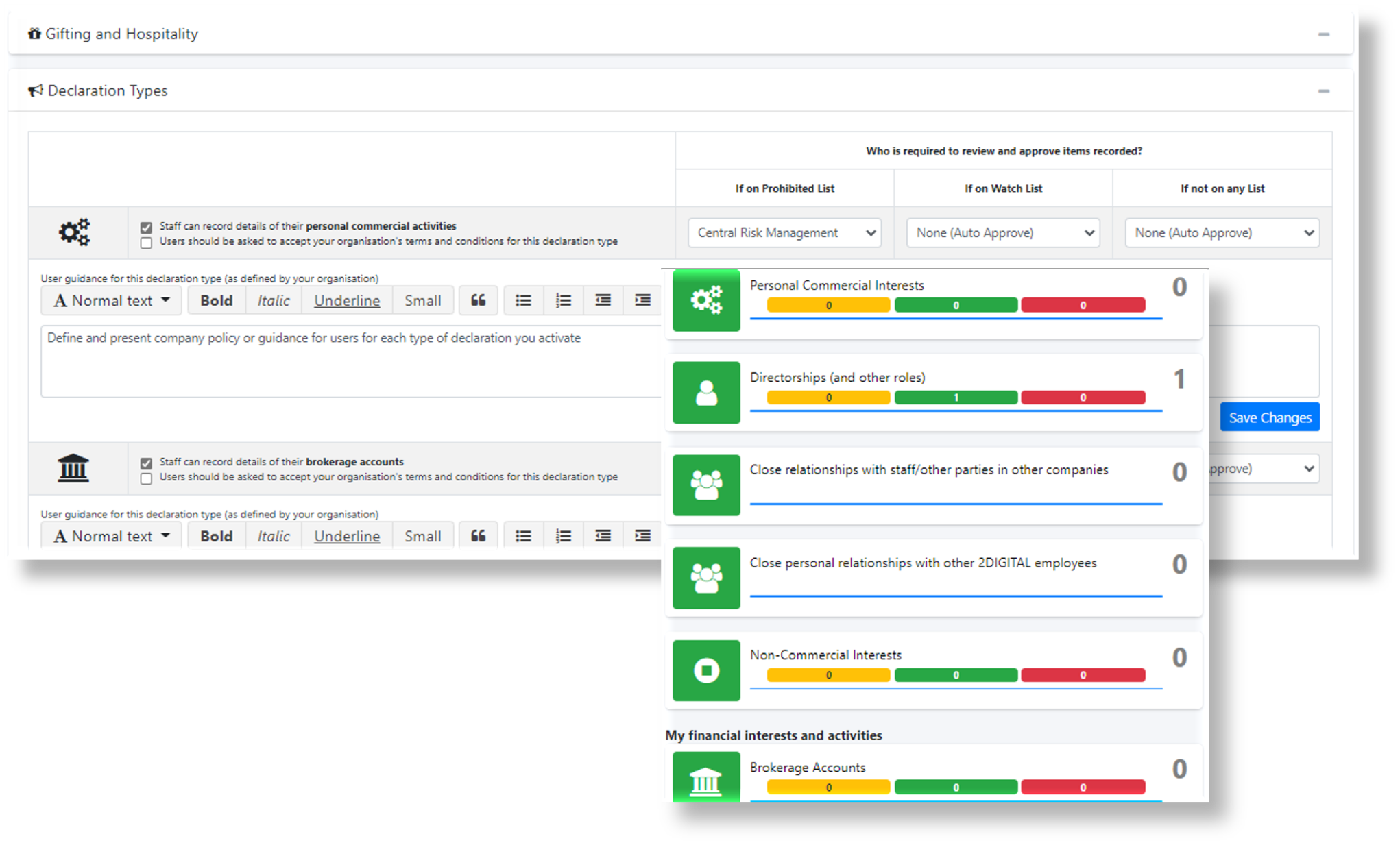 Digitally drive the declarations process involving all affected stakeholders at the appropriate time and reducing the administrative burden of identifying and managing potential conflicts